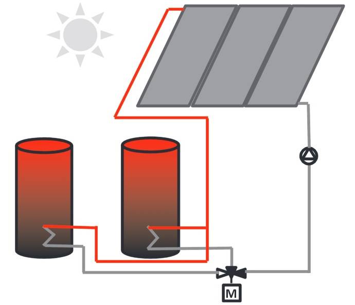 При повороте шпинделя плавно открывается вход горячей воды, а вход холодной воды (обратки) закрыт. Тем самым повышается температура смешанной воды (в подающем трубопроводе) при приблизительно постоянном расходе. При закрытии подачи горячей воды от котла в систему, открыта подача обратки (байпаса) к котлу, следовательно, возможна термическая циркуляция, что повышает темпуратуру возвратки и увеличивает ресурс котла. Для автоматического регулирования можно использовать ресиверсный привод для двухходового смесительного крана ASH-7712 с углом поворота 90oC. После вывода привода толкатель может регулироваться вручную.