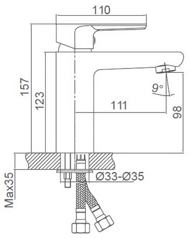 Схема размеров смесителя для умывальника FRAUF GRAND HERZBLLATT FG-052901