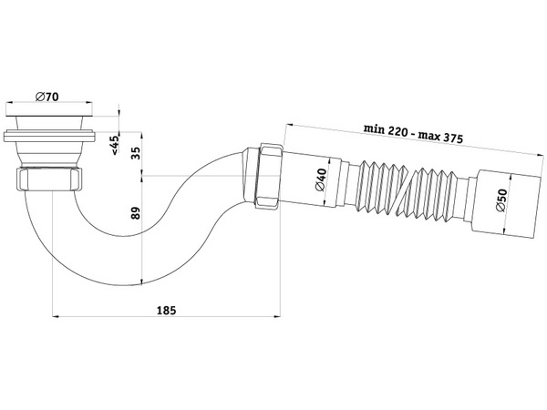 Схема размеров сифона для душевого поддона регулируемый АНИ Пласт
